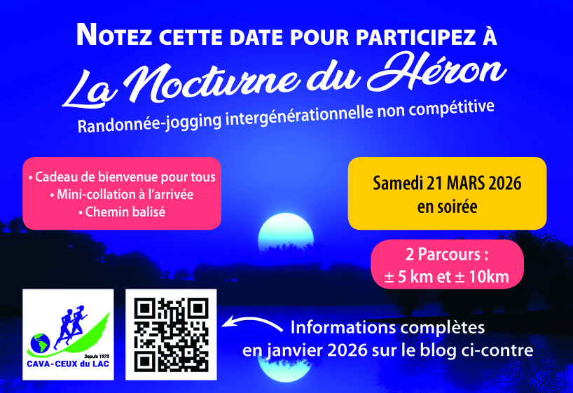 « La Nocturne du Héron » est une randonnée-jogging, non compétitive (1)  qui permet à chacun de découvrir, en toute sécurité, l’ambiance particulière de la marche ou de la course de nuit à la frontale.